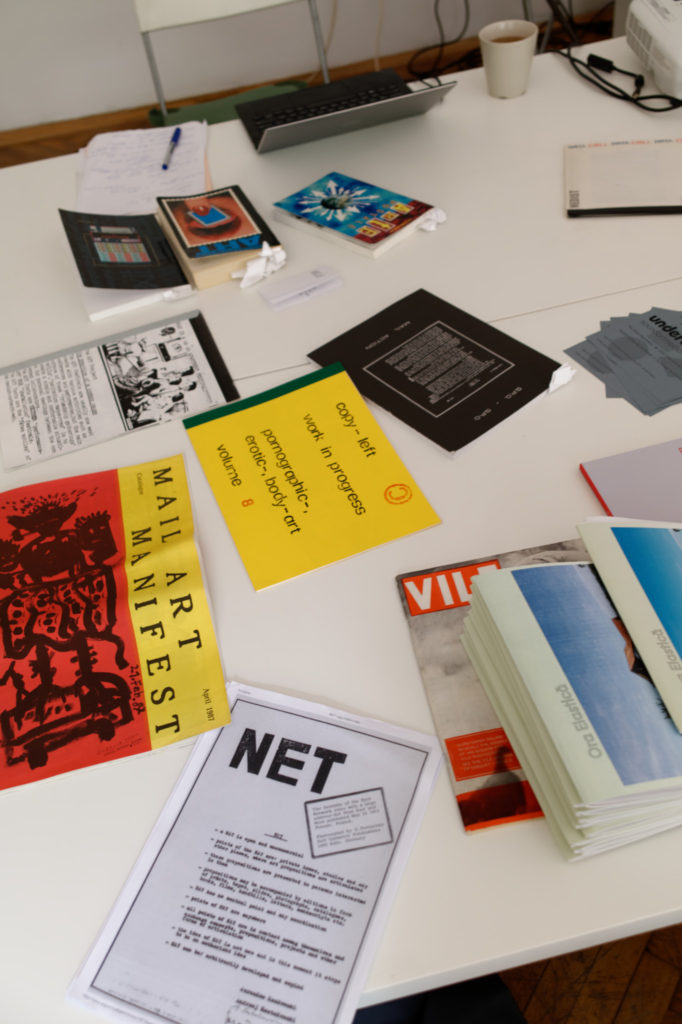 Arguably, many characteristics of today’s Internet culture were anticipated in 1970s and 1980s counter-cultures and non-institutional/samizdat art practices including Mail Art, zines and cassette tape music. Upon close inspection, many so-called issues of today’s Internet can also be found in them: junk mail, viruses, crashes, fascist trolling and complex system administration.